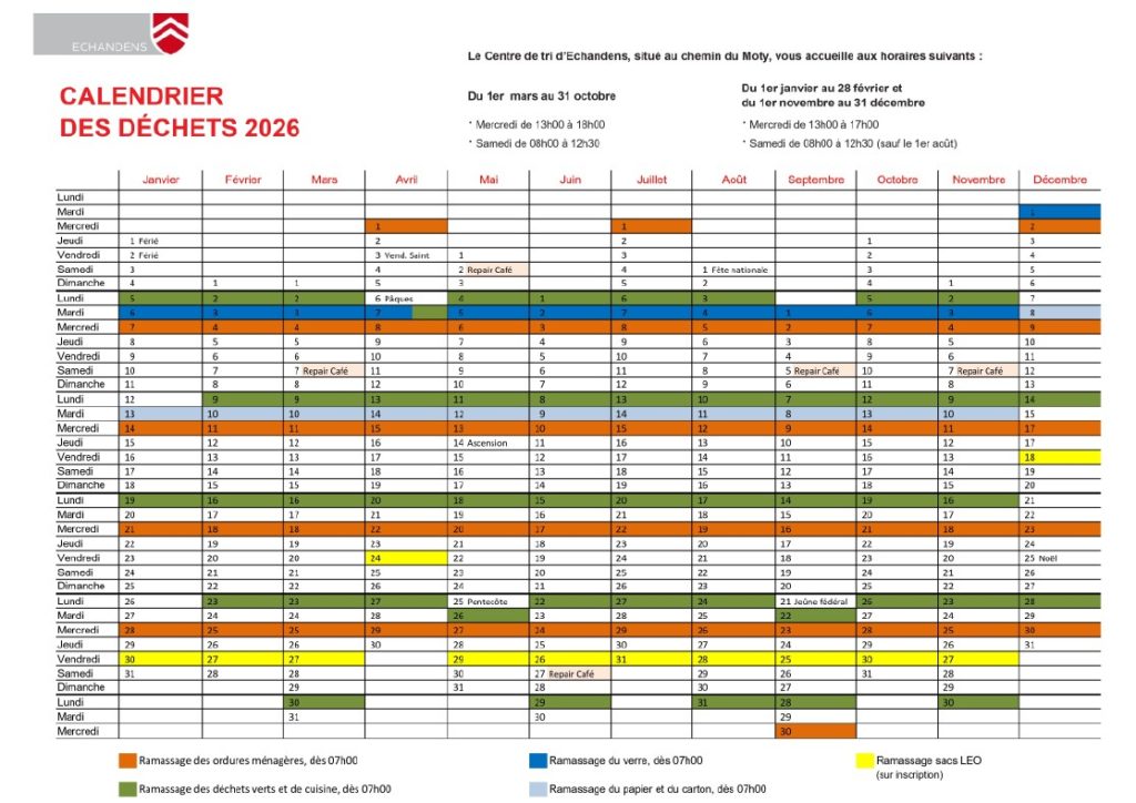 Les Echandelier·ères disposent d’un large service de ramassage de déchets au porte-à-porte ainsi qu’un Centre de tri moderne et performant, ouvert deux jours par semaine, le mercredi et le samedi. Chaque habitant·e peut ainsi choisir par quel biais recycler ses déchets.